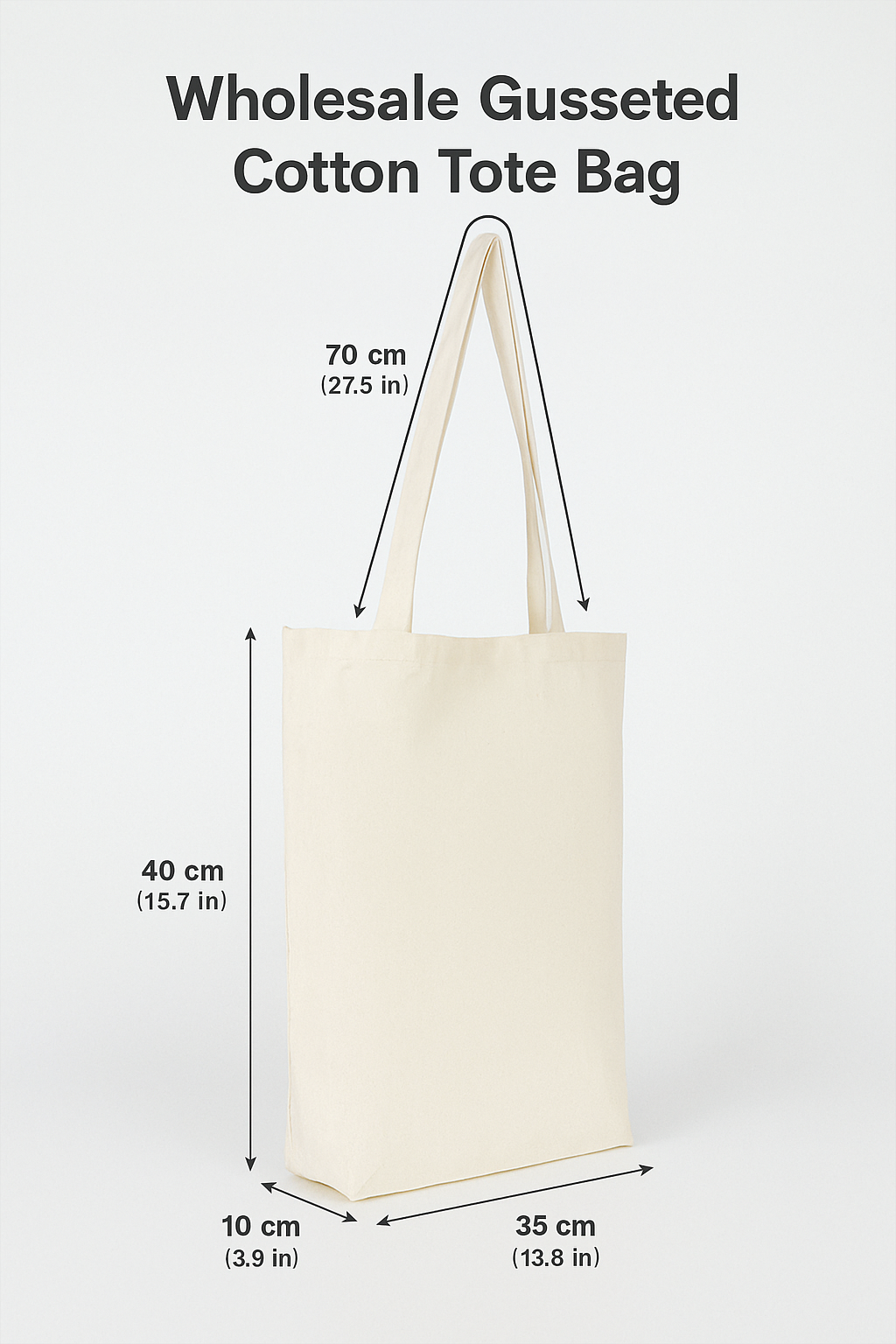 Gusseted Cotton Tote Bag – 100% Natural Canvas, 35x40x10 cm (13.7×15.7×3.9 in)